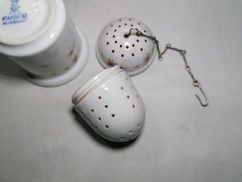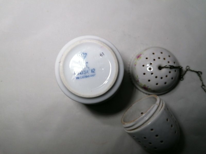 Hierbei handelt es sich um eine Porzellan Tee-Ei Teesieb Maße Hohe ca 6 cm und Durchmesser ca 14cm. Sehr guten Erhaltung wie in die Fotos zu sehen mit leichten Gebrauchs spuren. wie auch auf den Bildern sehen kann, Falls Sie noch Fragen haben oder weitere Fotos wünschen, mailen Sie bitte kurz. Sehen Sie sich meine andere Auktionen Versand in weltweit kontaktieren Sie bitte mit uns vor dem kauft!!!Bei dieser Auktion handelt es sich um einen Privatverkauf